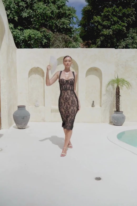 Upgrade your wardrobe with the Genevieve Black Midi Dress, a black lace dress designed to make a statement.