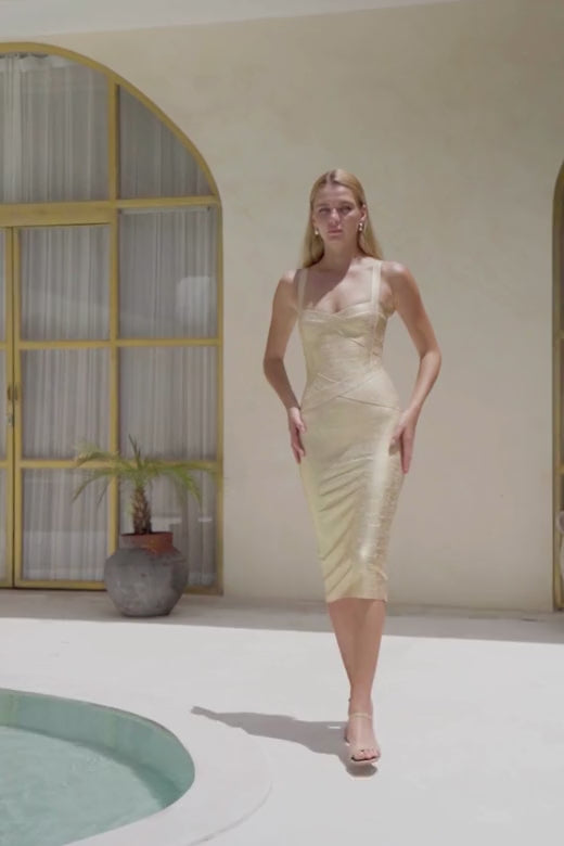TURN HEADS IN THE HEIDI GOLD MIDI DRESS