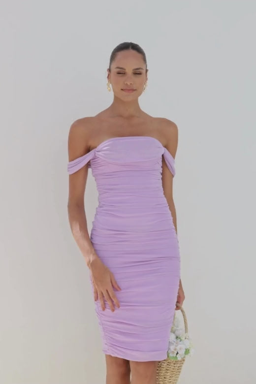 The Zia Violet Bodycon Dress is the ultimate sexy violet dress for any special occasion. If you're looking for the ideal Party Dress or Wedding Guest Dress, this style features a straight neckline, off the shoulder straps, ruched style dress and knee length dress finish. More on the plus size? Our bodycon dresses range in all sizes, so shop that bodycon wardrobe you've always wanted, today.